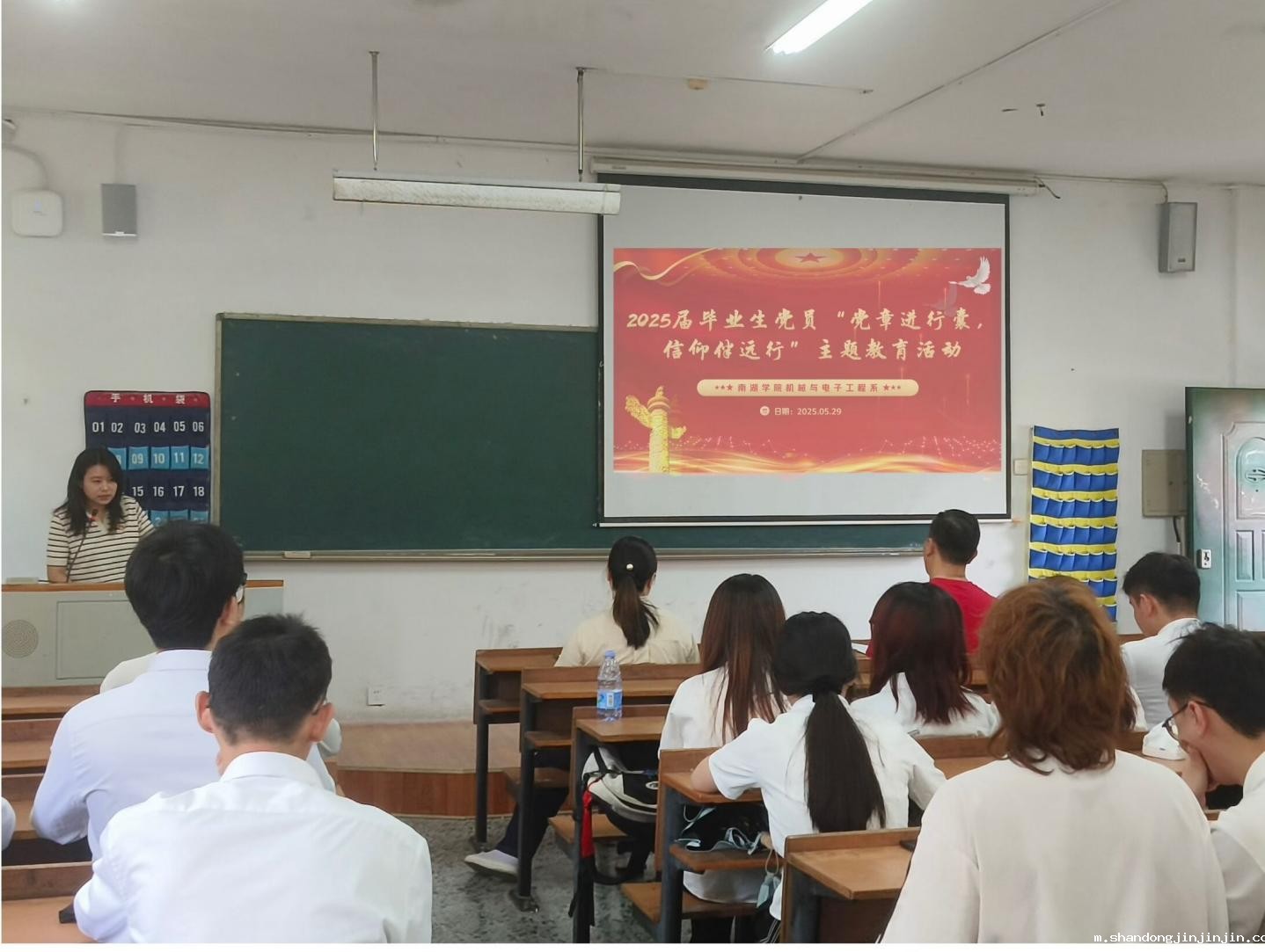 机电系学生党支部书记刘芬芬同志以《党章进行囊,信仰伴远行》为主题讲授专题党课,带领党员们一起回顾了党章的修订历程,强调党章是党员的行动指南。通过分析党章与信仰的关系,指出党员应知行合一,将党章精神转化为服务人民的实际行动。号召毕业生党员们应以科学、文化、体育、基层等不同领域的榜样为灯塔,在今后的理论学习、服务群众、自我革新中践行信仰,为实现2035年和2050年奋斗目标贡献力量。